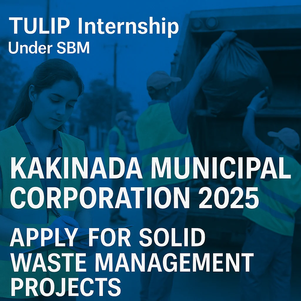 The TULIP Internship 2025 at Kakinada Municipal Corporation is a golden opportunity for students who are passionate about urban sanitation and sustainable development. Offered under the Swachh Bharat Mission (SBM) and the Urban Learning Internship Program (TULIP), this paid internship allows you to work on live projects in solid waste management, including waste collection, recycling, and composting.